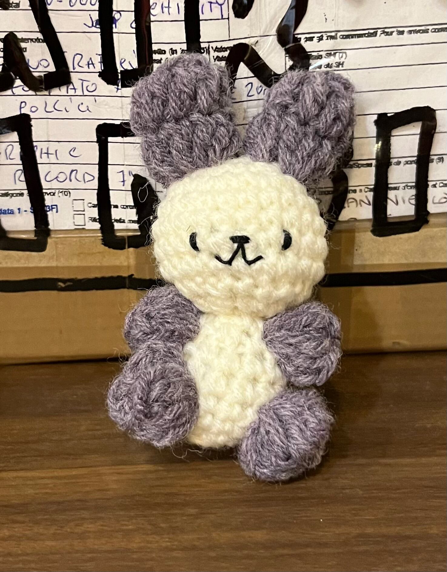 The FAXのフロント、カニオちゃん謹製の編みぐるみでございます。根付になってますのでカバンに付けたりキーホルダーにしたりしてくださいませ。