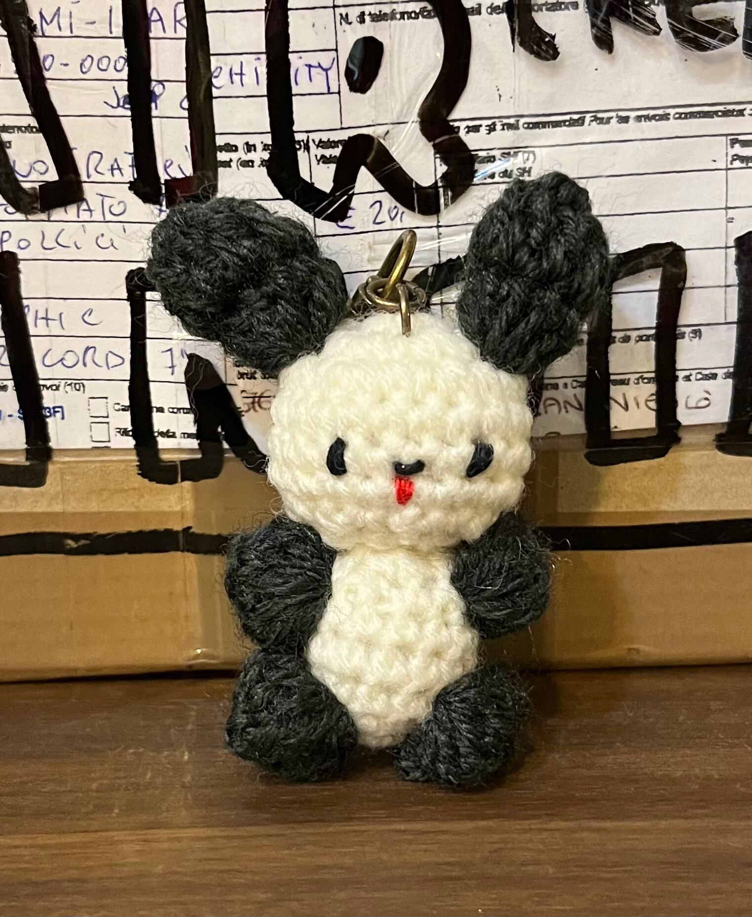 The FAXのフロント、カニオちゃん謹製の編みぐるみでございます。根付になってますのでカバンに付けたりキーホルダーにしたりしてくださいませ。